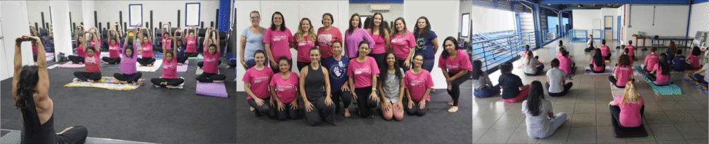 Na sequência, as funcionárias participaram de sessões de yoga conduzidas pela professora Renata Borges, promovendo momentos de relaxamento, equilíbrio físico e mental. A atividade contou com o patrocínio da empresa parceira AON, reforçando o compromisso conjunto com a qualidade de vida.